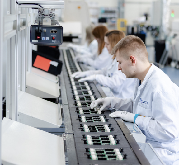 Vergießen der Geräte mit Zweikomponentenharz; Montage der Mechanik; Prüfgeräte EOL (End Od Line); Konfektionieren und Verpacken von Produkten